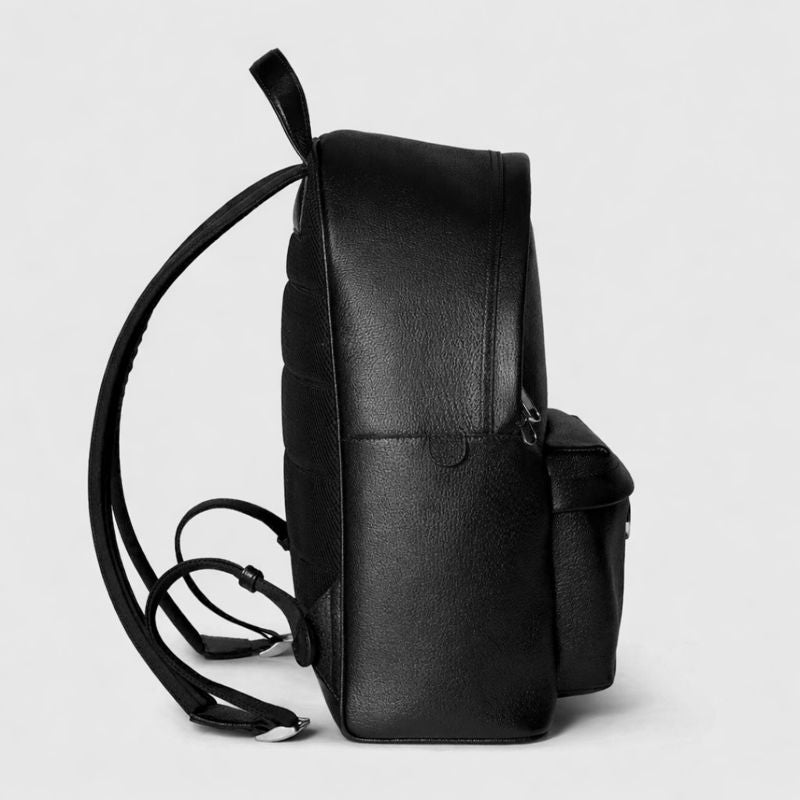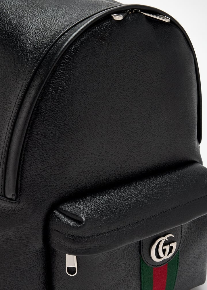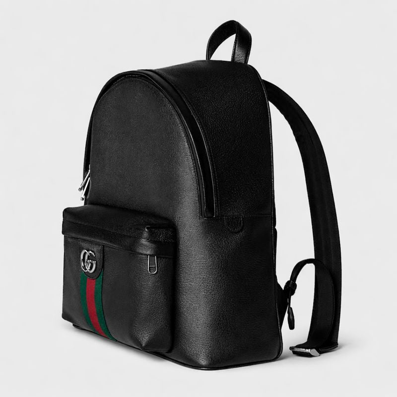 The Gucci Ophidia Backpack reinterprets a classic silhouette with refined craftsmanship and modern functionality. Crafted from soft black leather with a natural sheen, the design is elevated by the iconic Double G emblem and the signature green and red Web stripe, creating a timeless yet contemporary statement.