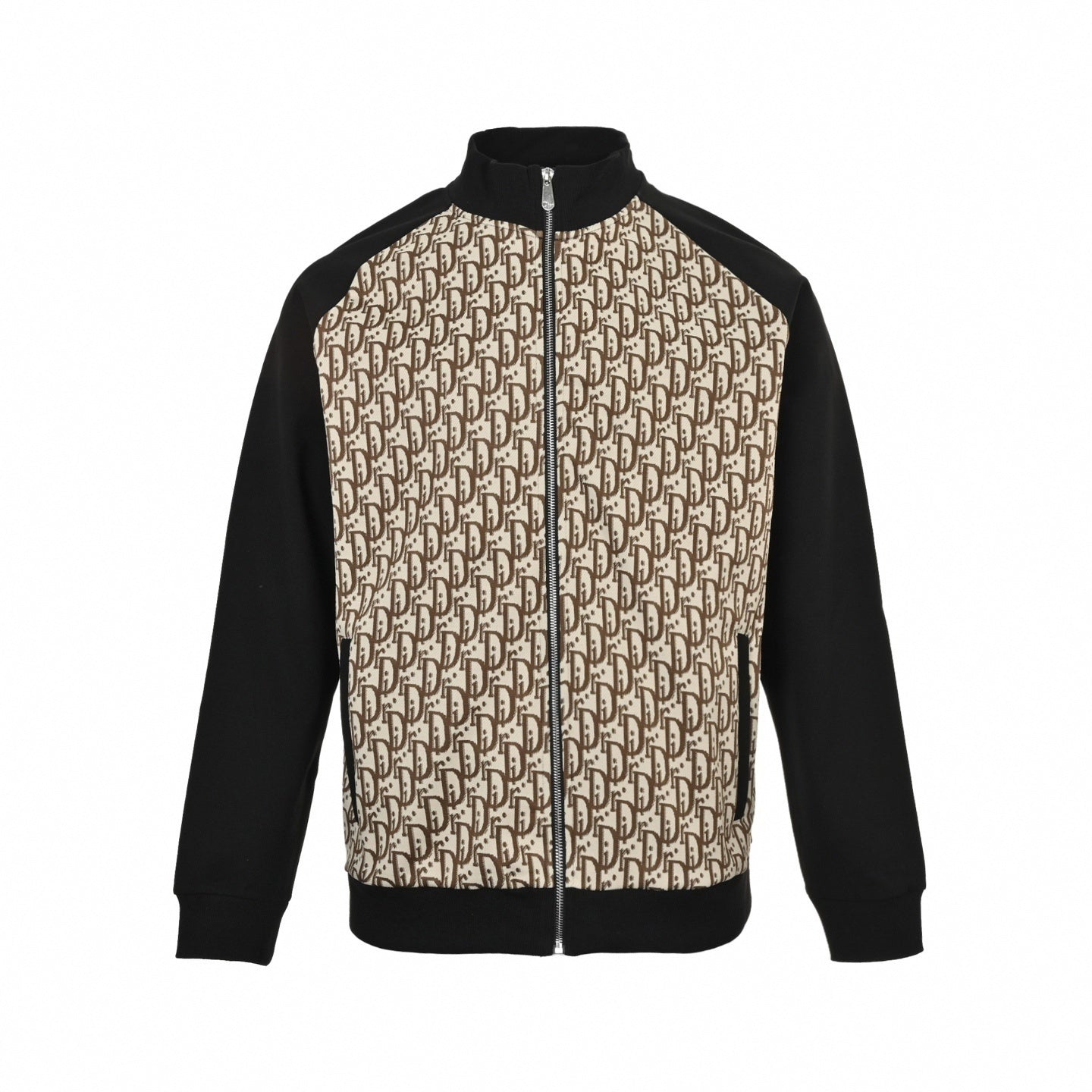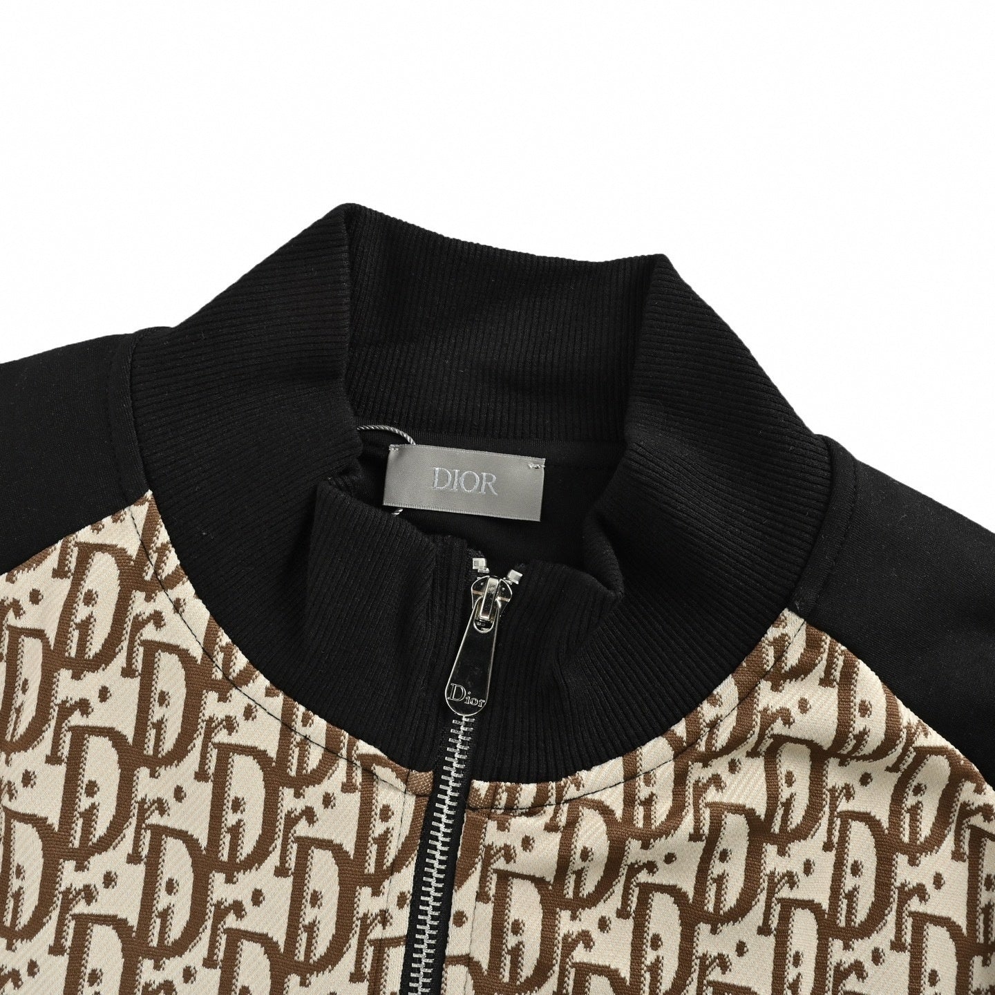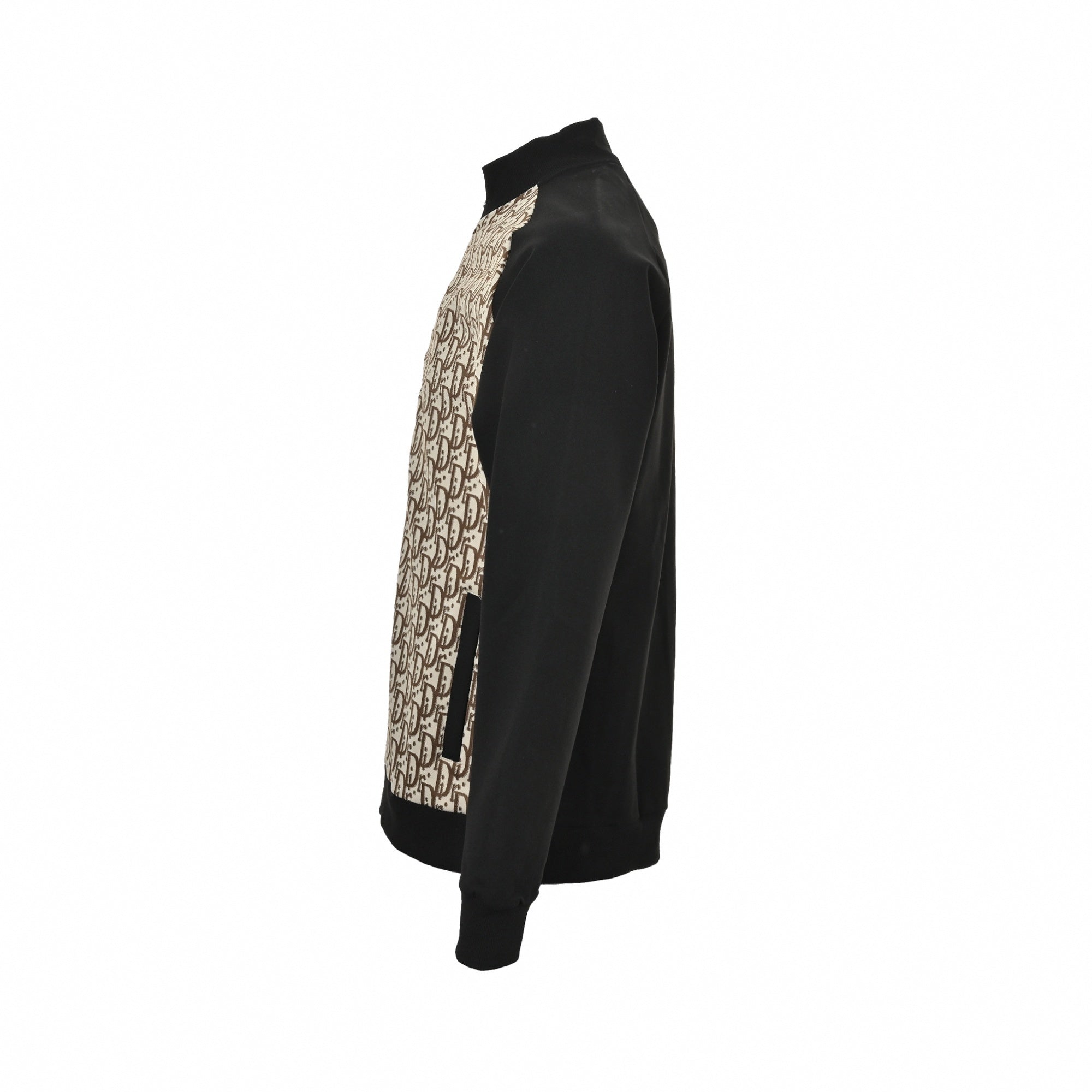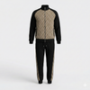 Oblique Zip-Up Tracksuit Set in Black & Beige